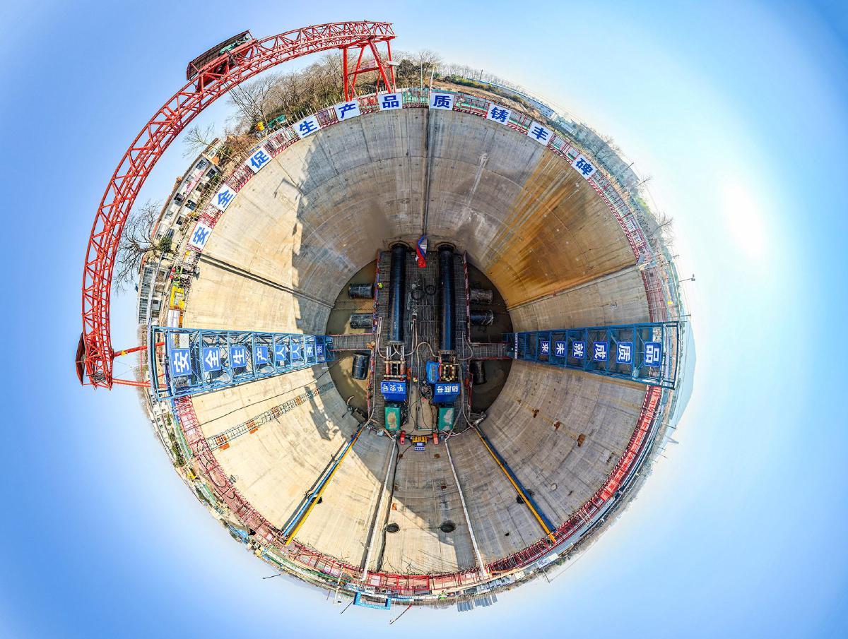 1月7日,环大冶湖新区供水工程一片繁忙,施工人员在直径1.82米顶管管道...