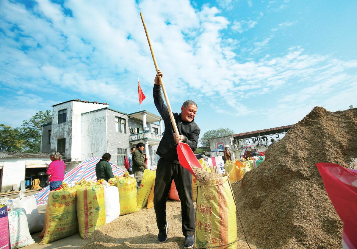 14日,在开发区·铁山区太子镇东风农场,港前村向家组村民前来提取粮食...