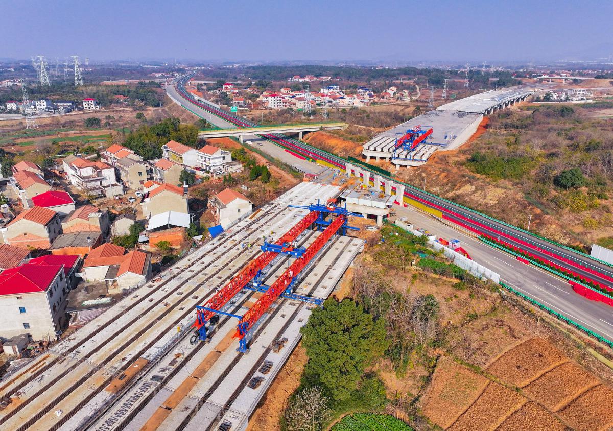 昨日,鄂州机场高速公路二期(大冶段)与武阳高速交会处,施工人员加紧...