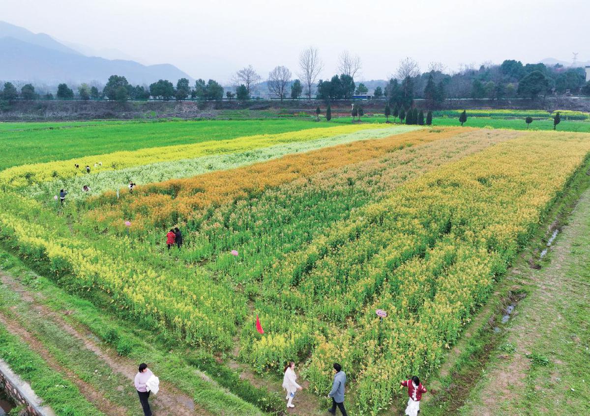 8日,大冶市金湖街道石任村50余亩五彩油菜花竞相绽放,各色花朵随风摇曳...