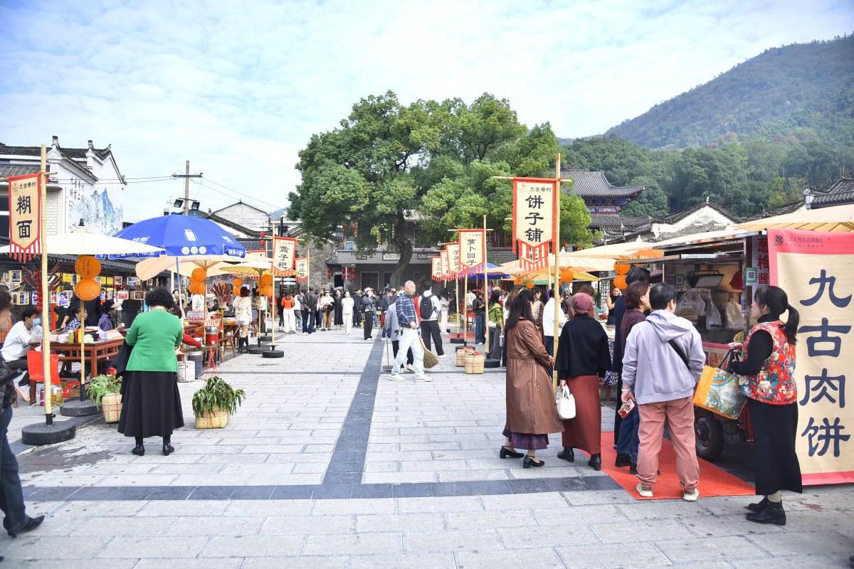 文旅融合,不仅让古老的乡村焕发活力,更让村民们的生活有了翻天覆地的变化。“村里环境越来越好,来玩的游客越来越多,我们卖东西也特别方便,村里给我们在集市上安排了固定摊位,还不收租金。”在九古集市里,上冯湾村民石春枝老人一边整理着自家产的梅干菜、红薯和橘子,一边乐呵呵地对记者说道。