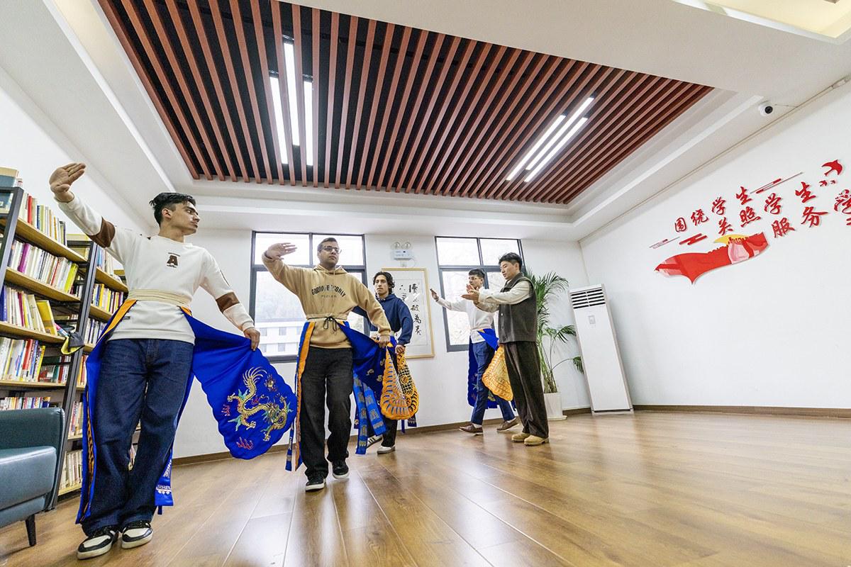 “头通鼓战饭造,二通鼓紧战袍,三通鼓刀出鞘,四通鼓把兵交……”2月6日,记者前往湖北理工学院探访4位外国留学生参演背后的故事时,他们依然意犹未尽,时不时摆起手势唱将起来。