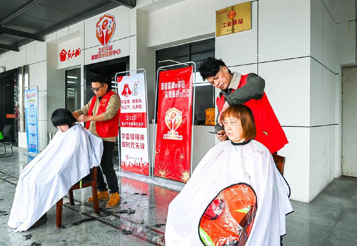 5日,市总工会职工服务中心在工会驿站开展学雷锋志愿服务活动,面向新就业群体、环卫工人、网约车司机等提供健康义诊、免费理发等服务,以实际行动践行志愿服务精神,让雷锋精神在新时代绽放光彩。 黄石融媒记者 鄢巍 摄