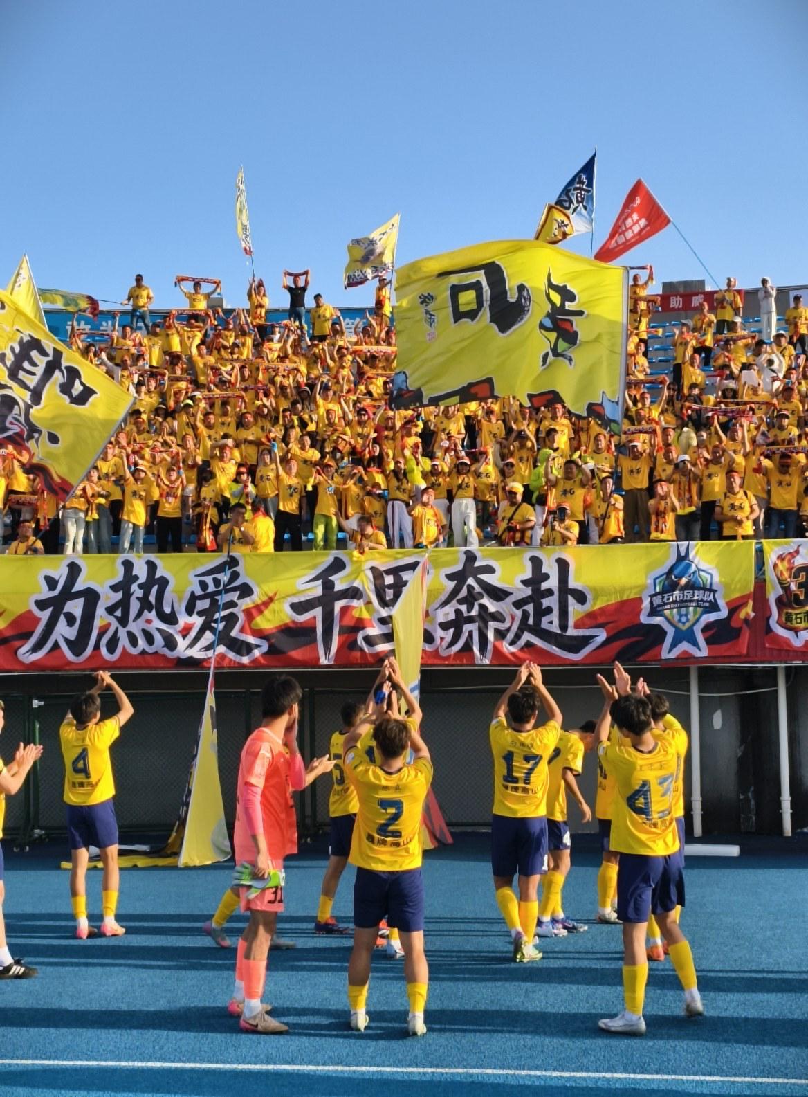 比赛尾声,黄石队再度发力。第88分钟,恩施小土豆队在己方禁区内犯规,黄石队获得点球,10号球员宋德福稳稳罚中,将比分锁定为4比1。进球后,黄石队全体球员奔向客队球迷区,向跨越600多公里从黄石远征而来、在看台上始终高歌助威的黄石球迷们鞠躬致谢,现场掌声雷动,欢呼声此起彼伏。