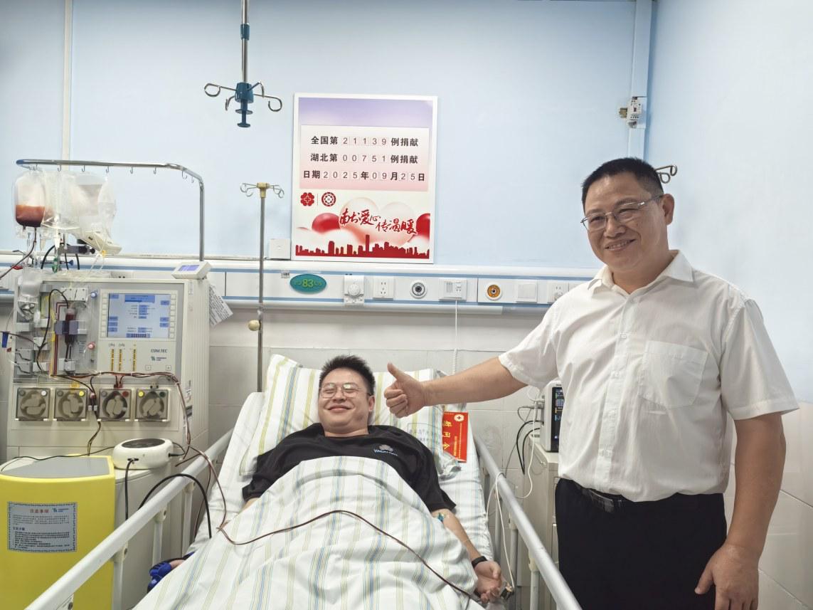 “很激动,也很开心,儿子实现了我曾经想要捐髓的想法。”小轩的父亲当天也请假从黄石来到武汉,陪着小轩一起完成这次特殊的“生命接力”。这位父亲也是中华骨髓库的一名志愿者,已坚持无偿献血16年,累计献血量达10600毫升。