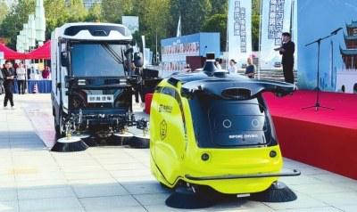 在展示现场,小蜜蜂和大海牛这两款无人驾驶环卫机器人来了,它们自动完成保洁作业的效率和全天候工作的状态,让人耳目一新。