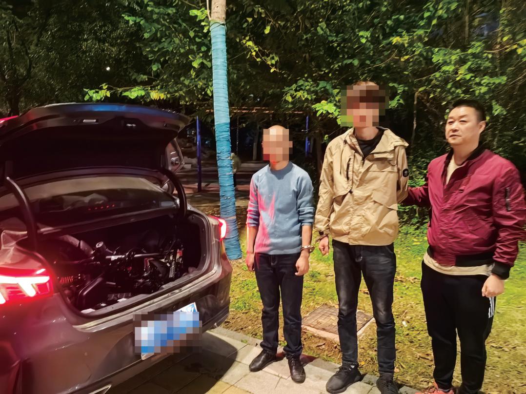 就在增援警力赶往现场途中,跟踪“取手”来到黄石长江公路大桥下方的徐海雄发现,一辆悬挂外地号牌的灰色轿车停在了路边人行道上。在看到“取手”骑折叠电动车返回后,驾驶座上下来一名中年男子,帮助“取手”将折叠电动车收起,与“取手”背着的双肩包一起,打算放入车辆后备厢。