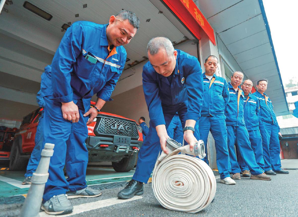 昨日,武钢资源大冶矿组织员工走进消防救援站,通过穿戴体验、实操演练等沉浸式活动,教育引导员工熟练掌握灭火逃生技能,筑牢矿山安全生产防线。