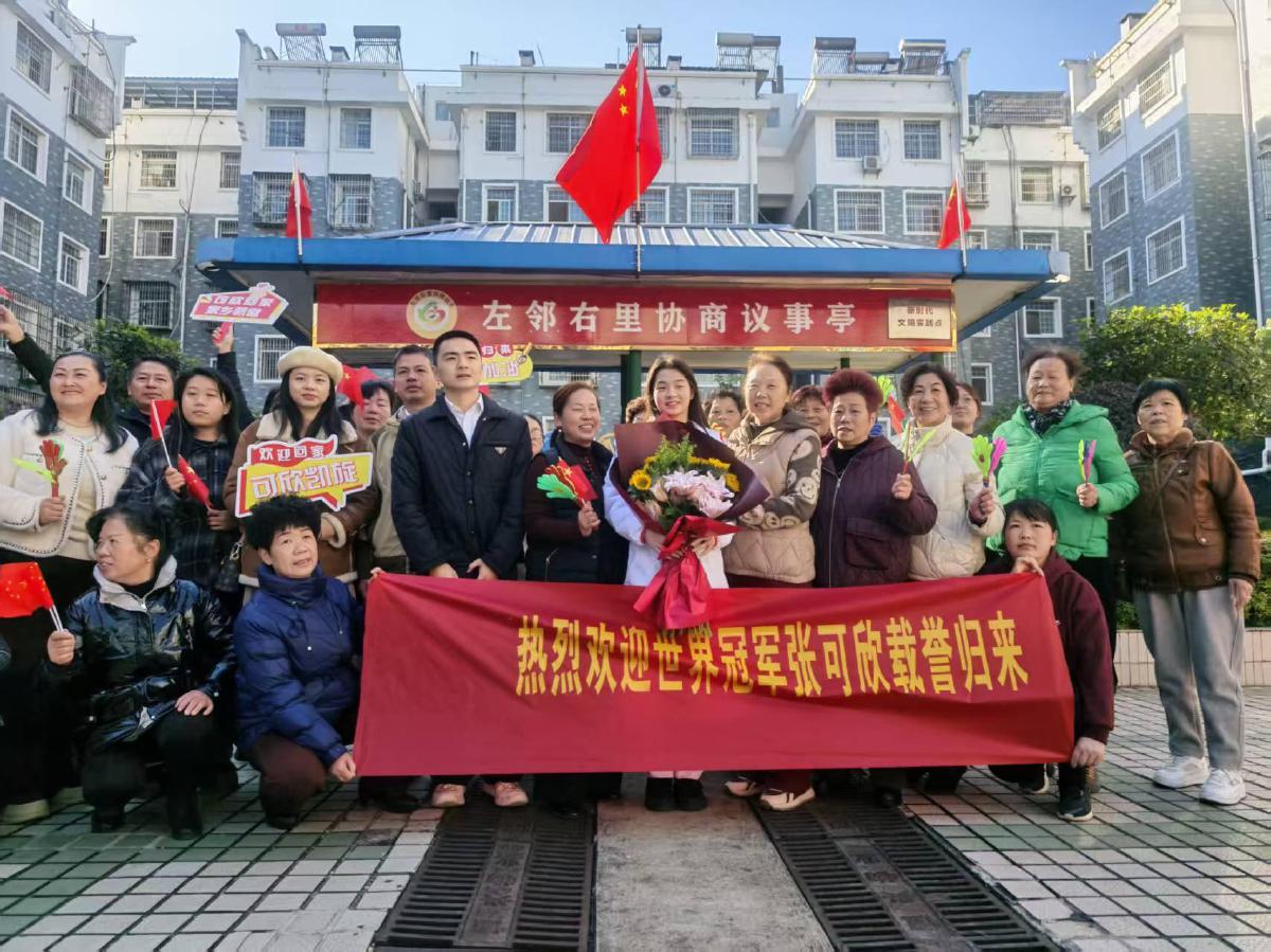 当天,西塞山区文旅局、八泉街道与恒兴小区居民共同为张可欣举行欢迎仪式。现场不仅洋溢着掌声与鲜花的热烈氛围,还特意准备了张可欣爱吃的黄石土特产和充满家乡情谊的文创作品,以接地气的方式表达对她的祝贺与关怀。