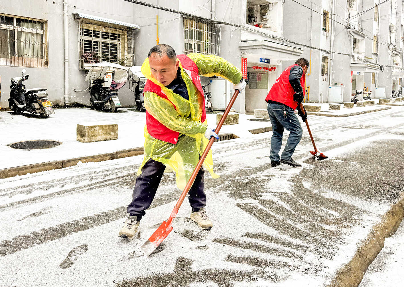 19日,开发区·铁山区胜利路社区组织“微管家”在背街小巷、楼栋口开展清雪志愿服务活动,用实际行动保障辖区居民出行安全。(黄石融媒记者 鄢巍 通讯员 姜帆 摄)