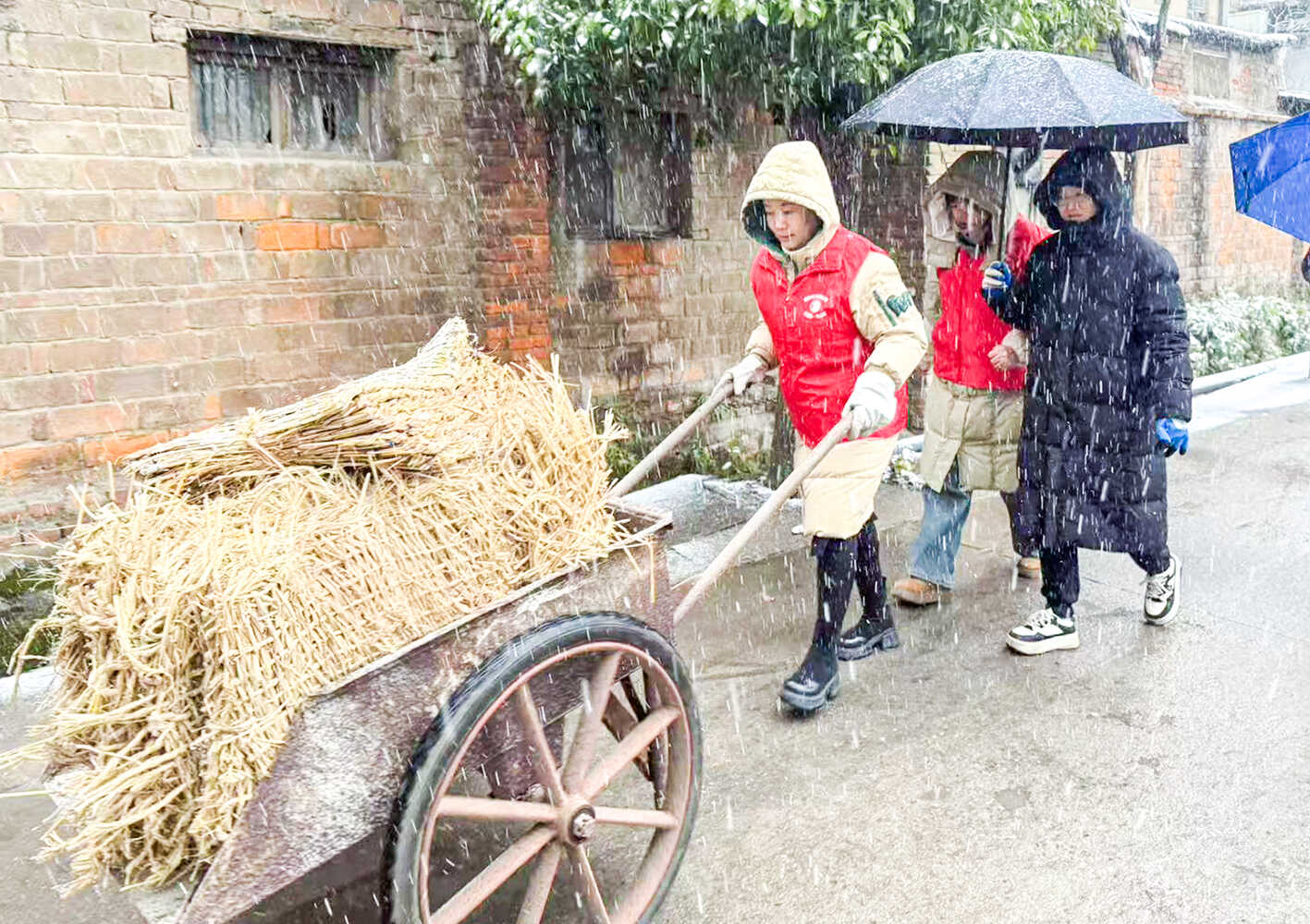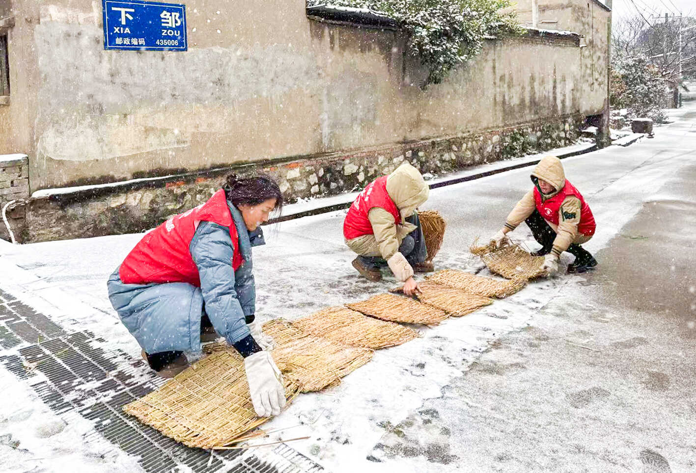 19日,开发区·铁山区三岔路社区组织志愿者开展“低温雨雪防范 暖心上门关怀”行动,通过铺设草垫,走访高龄独居老人,排查隐患,确保居民出行安全。(黄石融媒记者 鄢巍 通讯员 张梦琪 陶雨晴 摄)