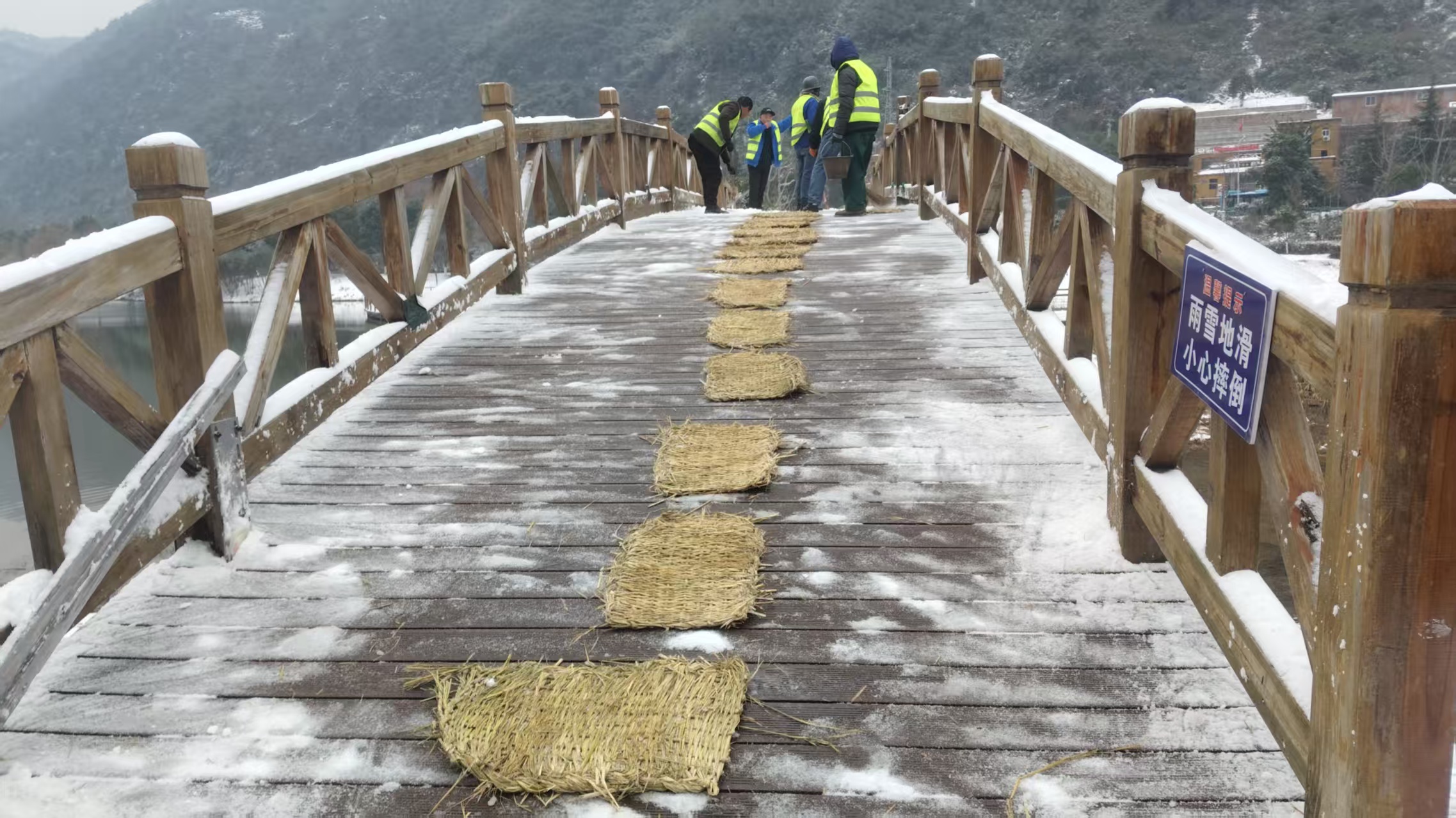 20日黄石市普降大雪之后,黄石市公园广场、主次干道等区域积雪较多,21日气温仍然低至-1℃,部分公园和道路出现结冰路滑现象。两天来,黄石市园林部门累计组织840人,调动42辆车,使用工业盐5吨、草垫5900余个、设置警示标识300余处,采取“除雪—冲洗—撒盐—清理—草垫”的组合方式对公园广场易结冰路段及坡道进行积雪清理,全力保障市民出行安全。(融媒记者 石勇 通讯员 瞿泽敏 摄)