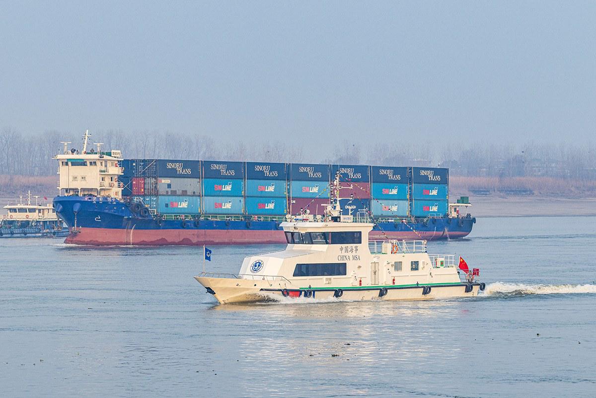 作为“电力驱动+智能控制”的纯电动公务艇,其列装将有效降低运维成本与燃油消耗,助力长江航运绿色转型,为生态保护与绿色发展提供示范。(融媒记者 李飞 文 彭喆 徐雨 摄)