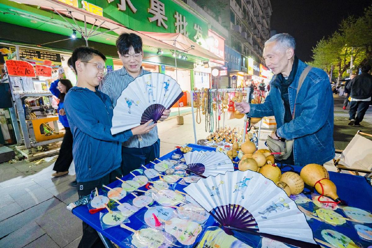 15日,武汉路夜市上,邵师傅绘制的带有“楚超”元素的烙画葫芦与扇面画颇受市民青睐。随着“楚超”在黄石火热开幕,越来越多群众参与其中,乐在其中。