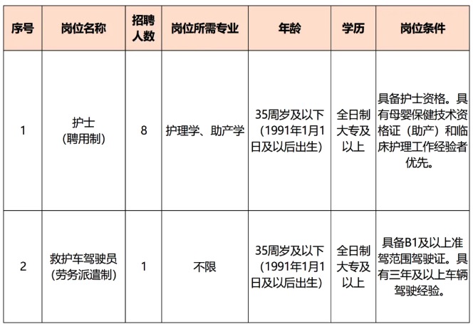 为满足业务发展和工作需要,黄石市妇幼保健院现公开招聘护士(聘用制)、救护车驾驶员(劳务派遣制),欢迎有志之士前来应聘,公告如下: