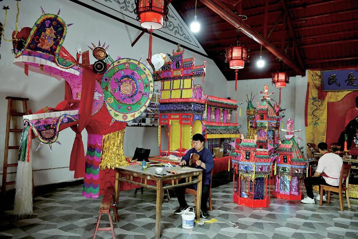 2日,在西塞山区道士洑村神舟宫内,神舟扎匠正在进行神舟的扎制收尾工作。按照当地习俗,农历五月十六早上8点神舟出宫巡游,农历五月十八神舟登江远行。西塞神舟会经过多年的传承发展,已经成为推动文旅融合的一个重要抓手。2009年,西塞神舟会成功申报为人类非物质文化遗产。2018年,道士洑村被国家授予“中国西塞神舟文化之乡”和“中国端午节俗传承基地”。记者 石勇 摄