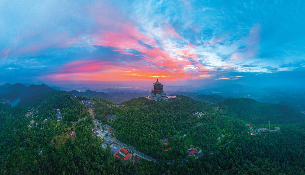 4日5时许,黄石市下陆区东方山风景区迎来瑰丽朝霞,云霞映照山峦,景致如画。记者 李航 摄