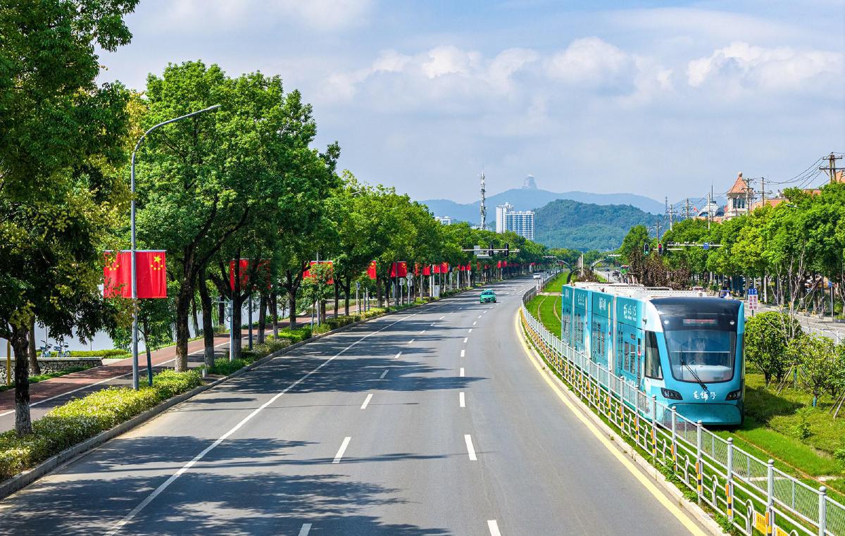 23日,磁湖路路灯悬挂上了鲜艳的五星红旗。据悉,为迎接“双节”,市、区两级园林部门启动城区环境装点工程,计划在公园广场、重点迎宾线路及交通节点摆放花卉21万余盆,悬挂国旗、灯笼、中国结等装饰3600余套。