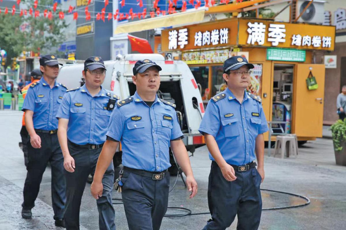 城管队员维护街头秩序