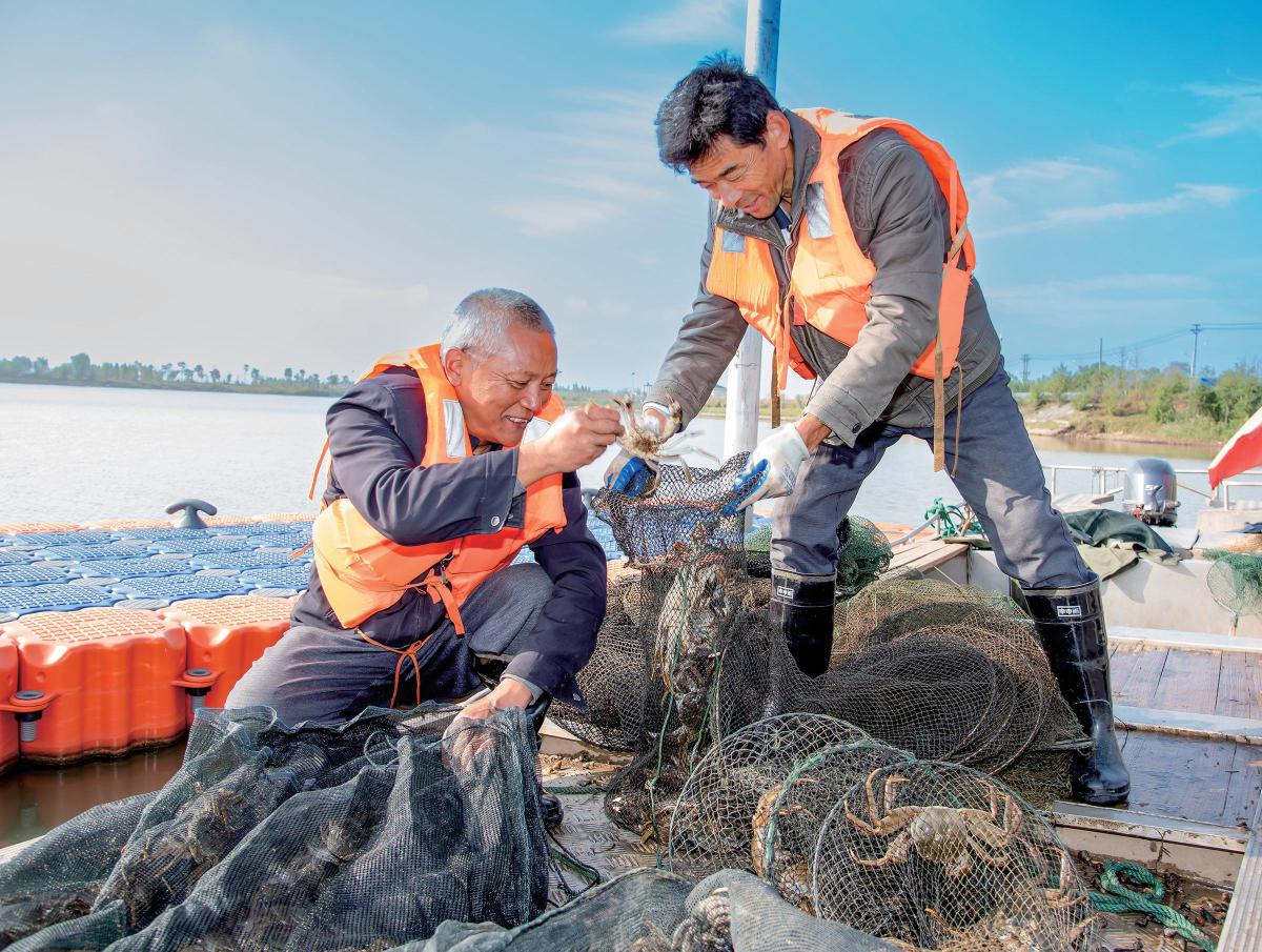 10月31日,大冶湖综合码头,渔民们正忙着捕捞大冶湖特产——“大长腿蟹”。记者从黄石市农业发展集团获悉,今年大冶湖近10万亩水面仅投放了300万只蟹苗,全面推行“大水面、低密度”的“人放天养”生态养殖模式。由于今年蟹苗投放时间较去年提前,“大长腿蟹”的上市时间也相应提前。预计今年总产量可达10万斤。记者 石勇 通讯员 纪海晏 摄