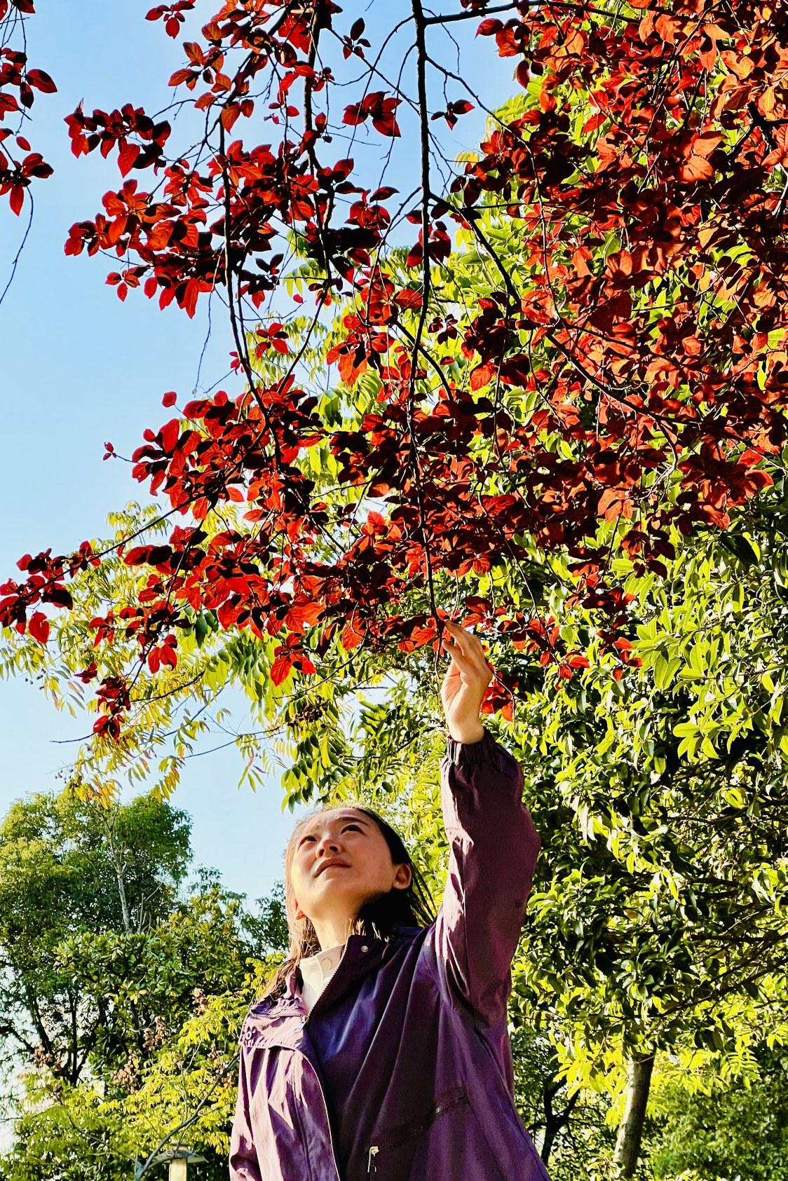 桂花湾广场,落叶如蝶翩跹。地面铺开厚厚的金红色“地毯”,俯身拾起一片秋叶,夹入书页,便仿佛将整个秋天的温柔与美好悉数珍藏。