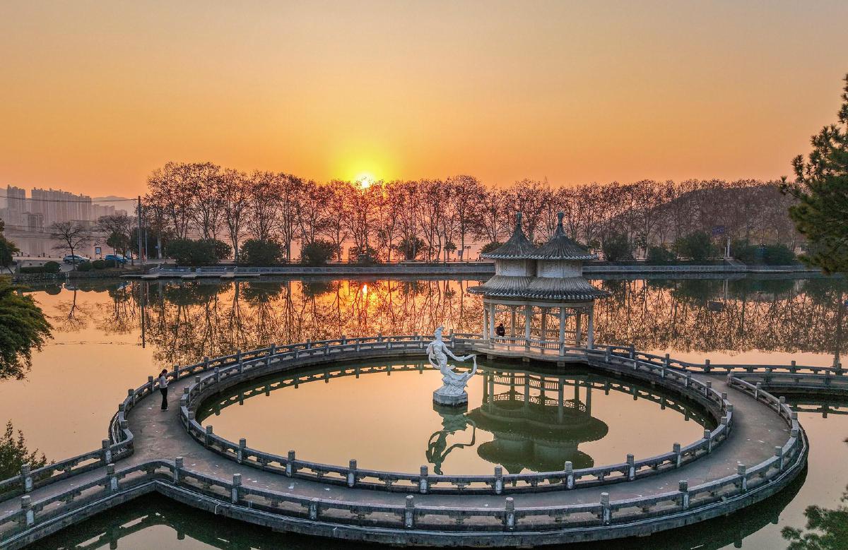 14日,落日余晖洒在澄月岛上,一幅暖冬画卷徐徐展开。黄石融媒记者 吴山 摄