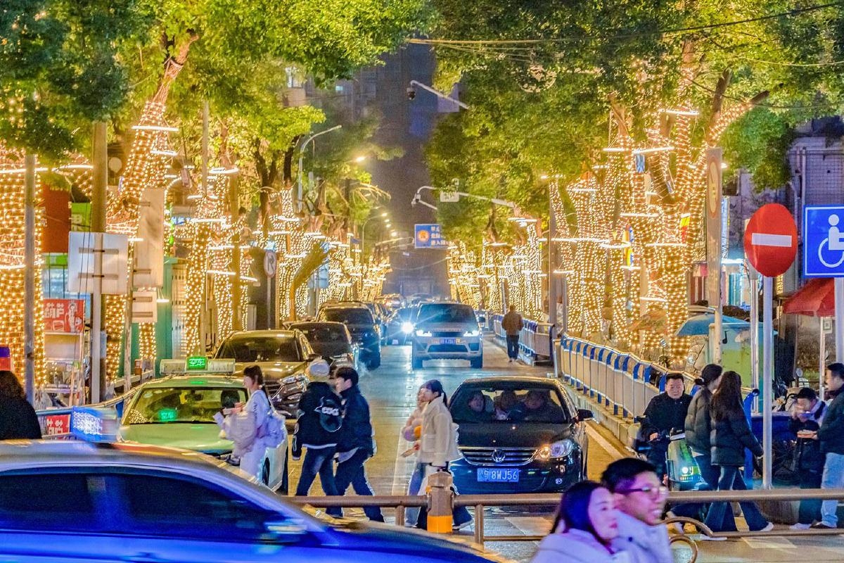 24日,西塞山区京华路夜灯璀璨动人,该路段新亮化工程进一步扮靓商业街与公共空间,营造出新春火热氛围。黄石融媒记者 吴山 摄