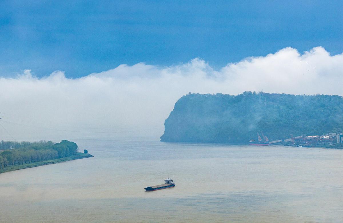 近日,一场细雨飘落,西塞山沉浸在一片朦胧烟雨之中。云雾缭绕于大江与山峦之间,如轻纱曼舞,增添了几分诗意与神秘。黄石融媒记者 周巍 摄