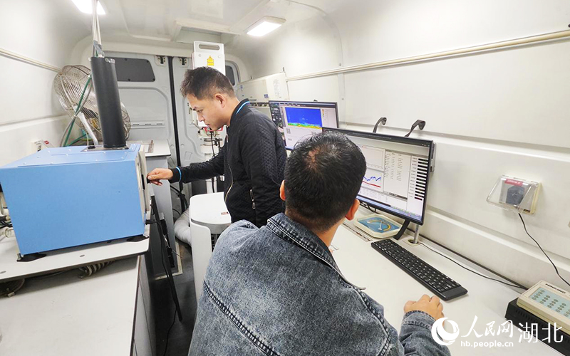 走航监测车内,工作人员正在分析监测数据。人民网记者 王郭骥摄