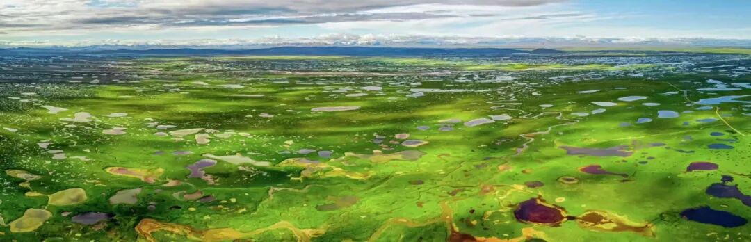 层层叠叠曲曲相连铺在水网草滩。