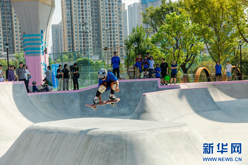 在杨泗港国博大道立交桥下,1.7万平方米的向阳冰雪轮滑体育公园内,滑板少年御风驰骋,轮滑爱好者穿梭竞速。聚氨酯运动地面、分区照明系统,让这片曾经的荒地,变身成为轮滑主题公园。