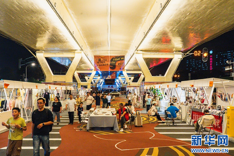图为2025年5 月1日,改造后的黄浦大街立交桥下,不少市民游客前来游览。新华网发(武汉市城管委供图)