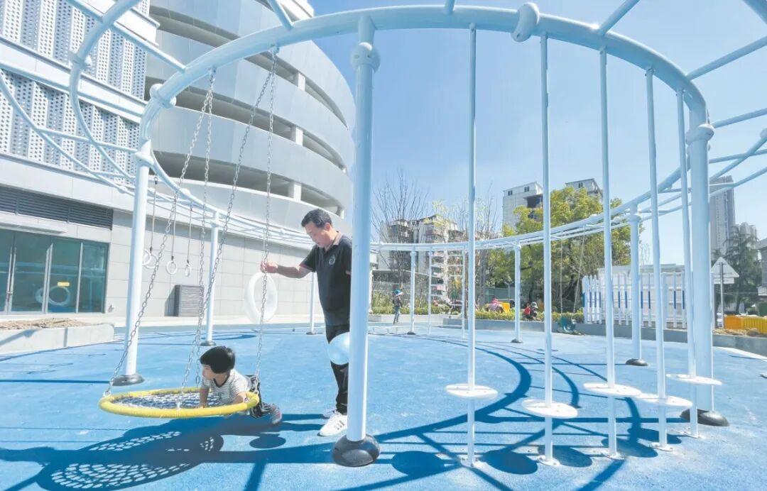 汉阳区知音东苑小区停车楼一侧建有儿童娱乐区,成为小朋友的快乐天地。记者冷靖华 摄