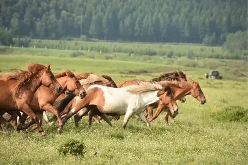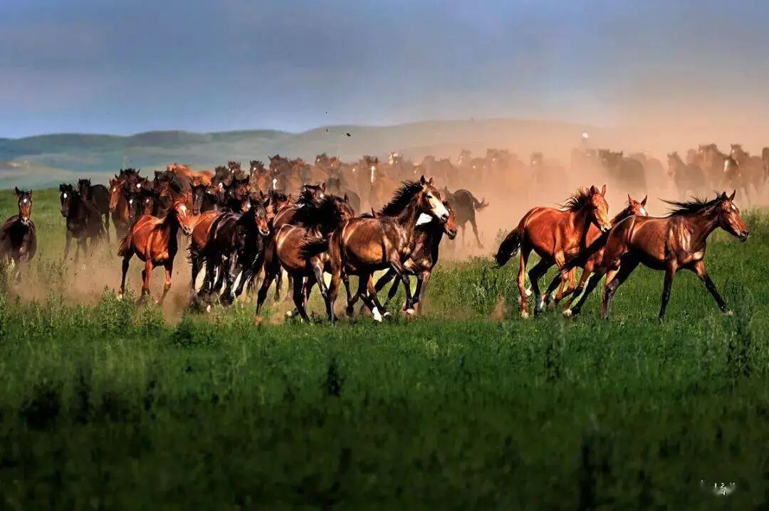 一匹马,一群马,跑出北美的丛林,越过白令陆桥,向着亚欧大陆、非洲大陆奔跑;溅起俄罗斯草原的青泥,北冰洋的雪风裹挟西伯利亚的冷风,撩起那渐密渐长的鬣鬃和平行于地平线的马尾;东方的蒙古草原,是这场接力长跑的诗和远方。