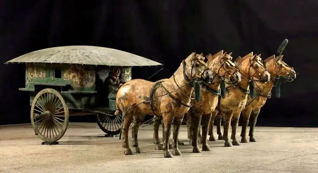 铁骑、战车、长枪、利剑、强弩,是春秋战国的标配,战车战马是一国一朝军事实力、科技实力。周朝初年姜太公发现匈奴“一骑当步卒八人”“且驰且射”“此匈奴之长技也”;赵武灵王强力推行“易胡服,改兵制,习骑射”的军事改革,胡服骑射使赵国“攘地北至燕、代”“辟地千里”;楚威王以“地方五千里,带甲百万,车千乘,骑万匹,粟支十年”的实力威震诸侯;公元前 484年5月,吴国攻齐国的艾陵之战,一举缴获齐国“革车八百乘”。晋昭公时期,晋国大夫叔向以“寡君有甲车四千乘”“何敌之有”,来鼓动盟国、震慑敌国。秦国灭六国,除了战略优势外,还有一个先天优势,就是拥有高素质的骑兵部队,秦地与西戎等少数民族的深度交流融合,使得这一地区成为秦国军队的战马保障地、粮草供应地。汉武帝时期战马数量达40多万匹,唐朝时高峰达到70万匹,“秦汉以来,唐马最盛”。骑兵与战车的规模和质量,决定国力和国运。