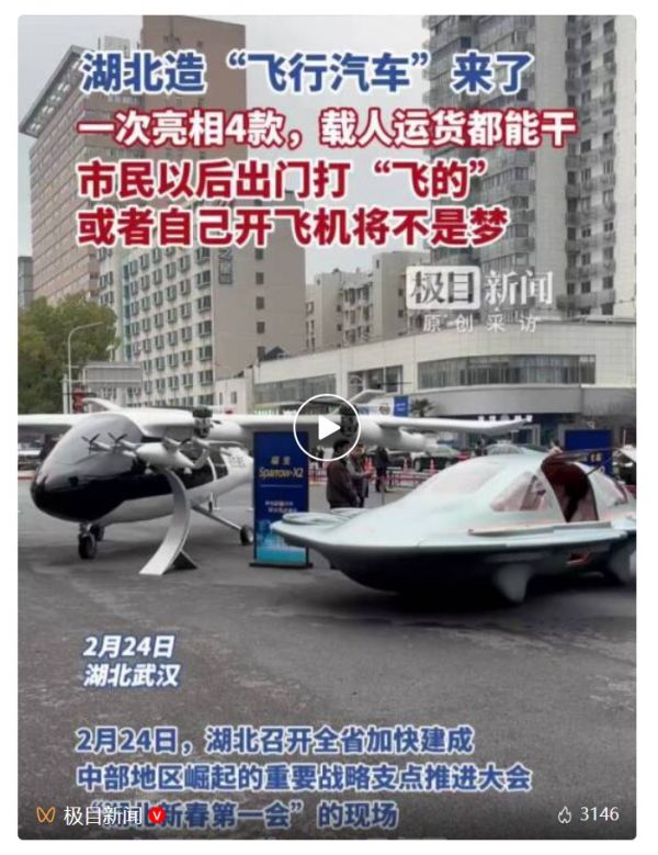 2月24日,春节后上班第一天,湖北召开全省加快建成中部地区崛起的重要战略支点推进大会。“湖北新春第一会”的现场,一口气展示了4种eVTOL,它们也代表了湖北在这条新赛道上的最新成果。