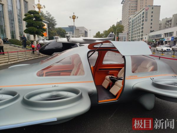 这架银灰色的飞行器,更像一辆装上了“翅膀”、去掉车轮的汽车,整机长5.6米,宽3.9米,高1.6米,和一辆家用轿车的尺寸相仿,最大载重达450公斤。