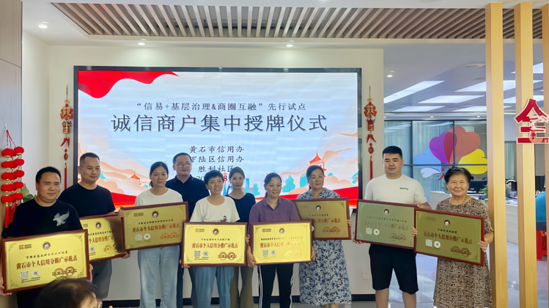 此前,胜利社区以商户的日常经营表现和社区公益活动参与度为基准,开展了诚信商户评选活动,通过区信用办初审后向市信用办申报,通过层层审核和公示,最终共有8家成功入选黄石市个人信用分推广示范点。
