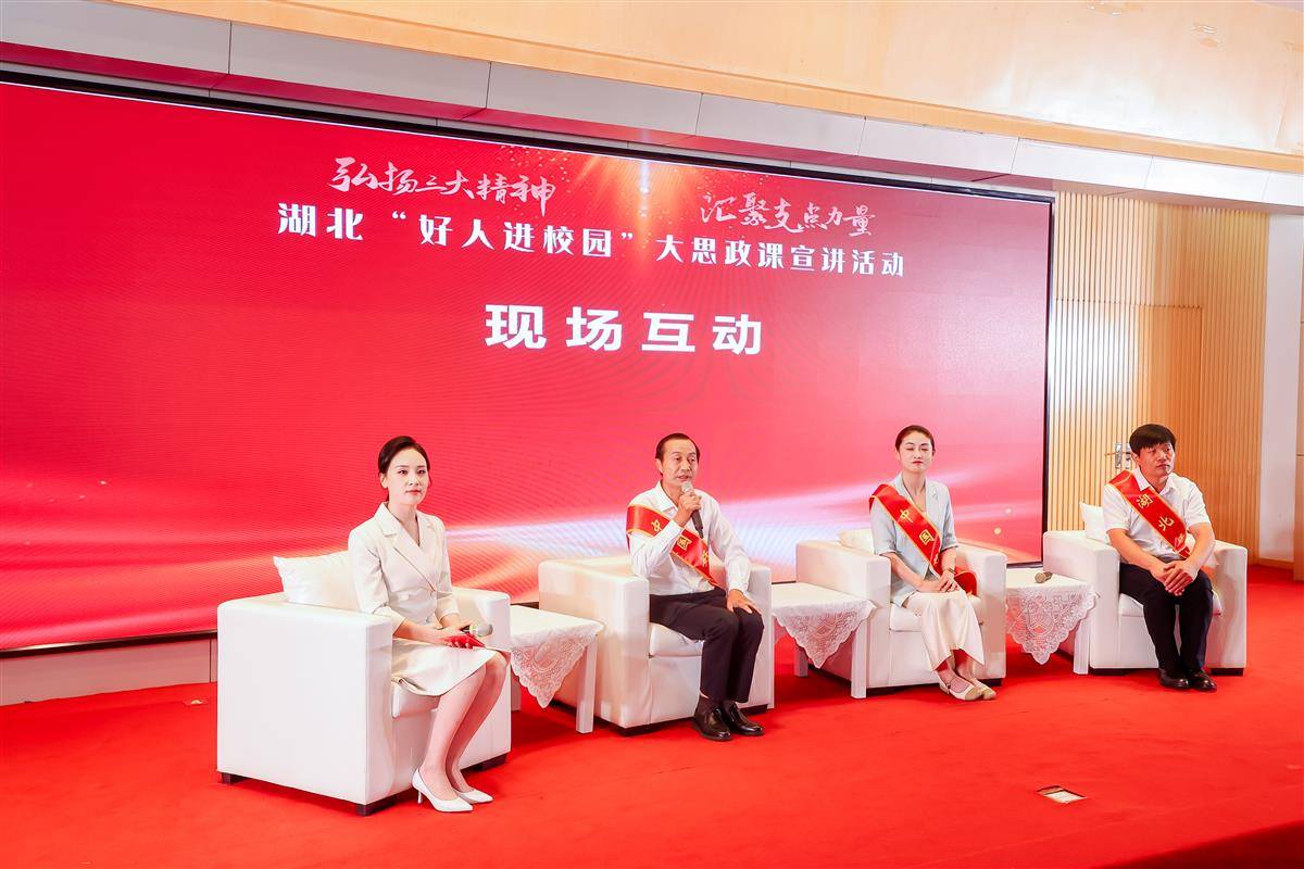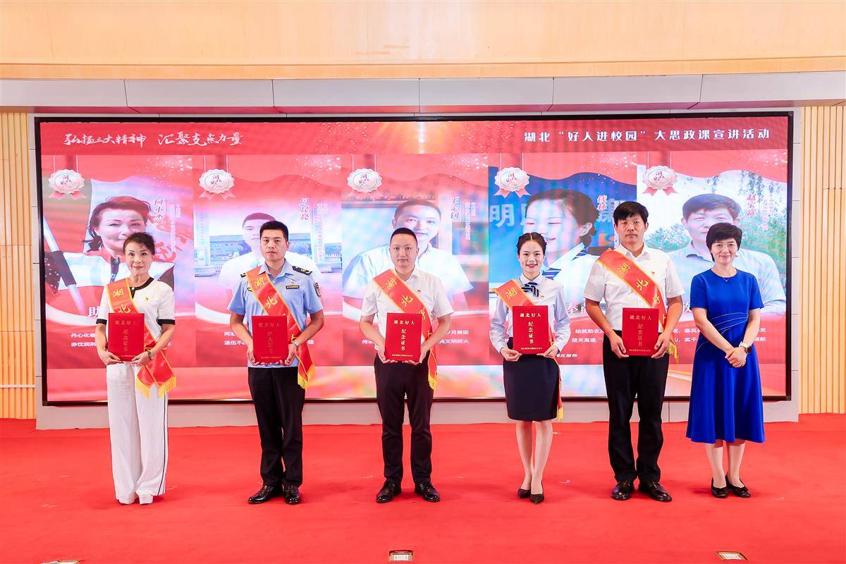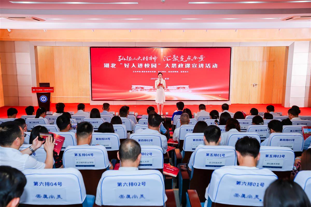 6月17日,由省委宣传部、省文明办、省委讲师团、省教育厅主办的“弘扬三大精神 汇聚支点力量”——湖北“好人进校园”大思政课宣讲活动,在武汉纺织大学阳光校区举行。活动现场发布2025年第一批“湖北好人”,同时启动新时代网络文明公益广告征集活动。