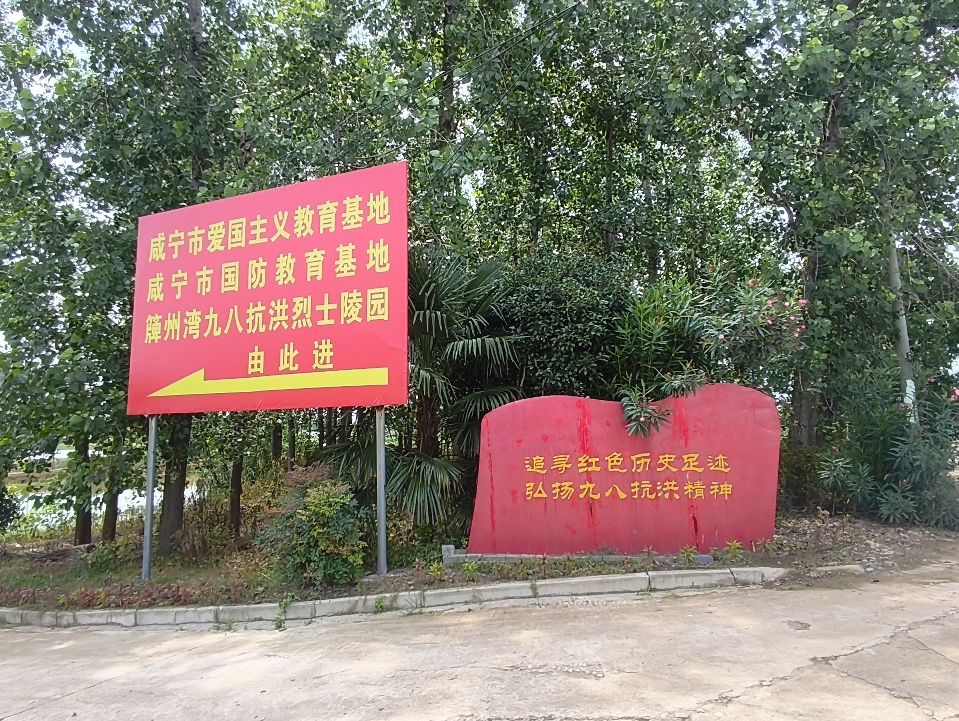 1999年3月,位于中堡村的“簰洲湾九八抗洪烈士陵园”竣工。烈士陵园离当年溃堤处只有一公里远,园内青松苍翠、寂静肃穆,19座衣冠冢整整齐齐存留于此;园外白杨高耸、稻苗油油。