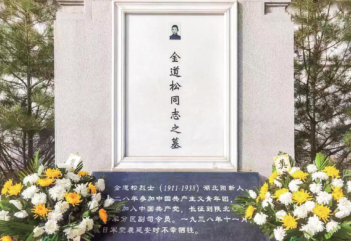 1938年11月20日上午,日军出动15架飞机空袭延安。当时正在中央党校学习的金道松,在回关中途中遇敌机袭击,中弹后不幸牺牲。年仅27岁的他,成为1938年牺牲的八路军12位高级将领之一。