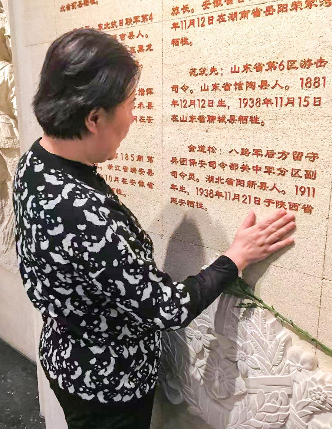 中国人民抗日战争纪念馆的烈士纪念墙上记载着金道松的信息(受访者提供)