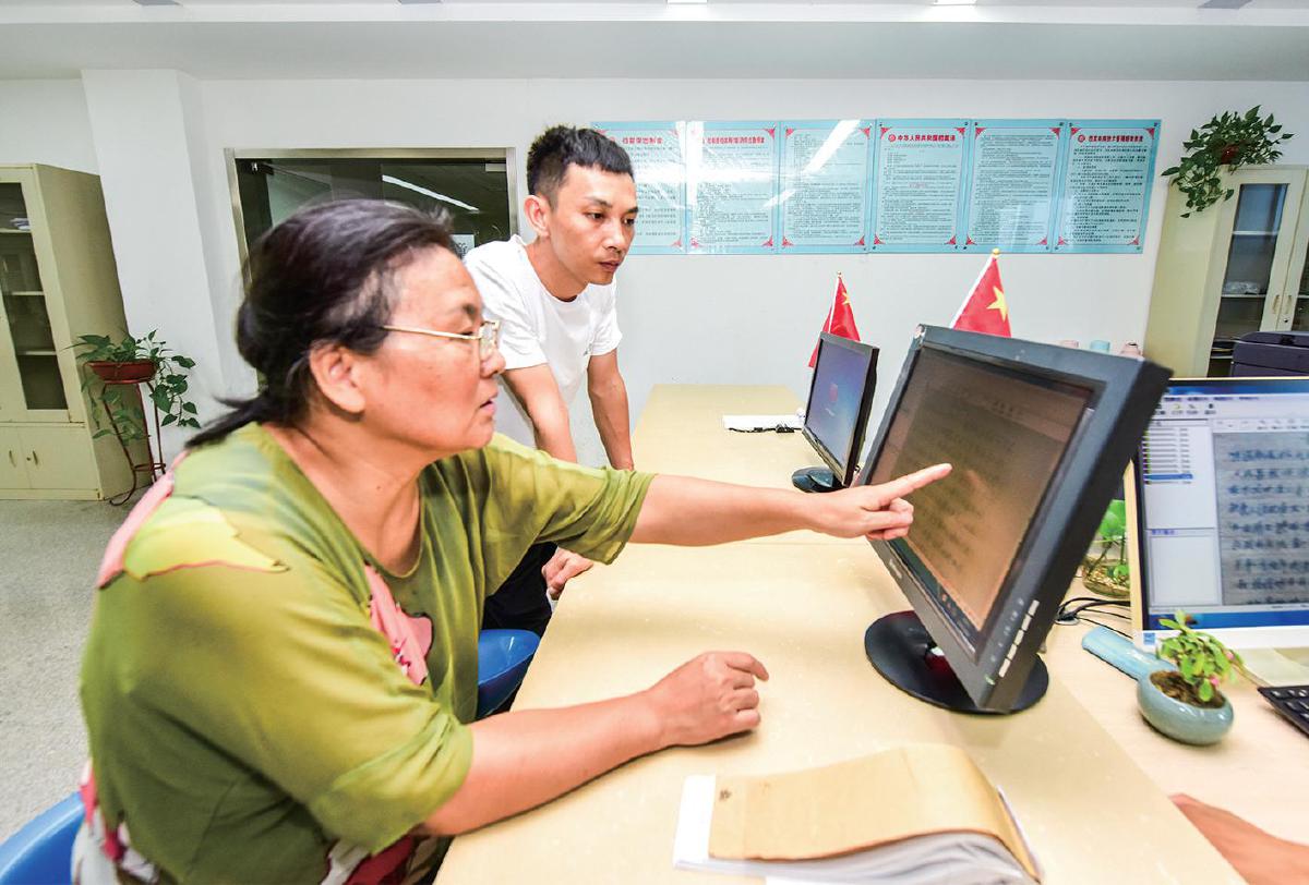张公雄(右)和舒宝珍在阳新县档案馆查询资料