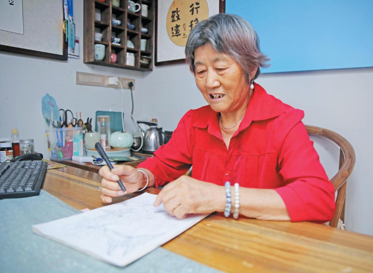 一张张细腻的白描画作在桌上铺陈开来,牡丹含苞、蝴蝶振翅、蜜蜂轻绕。而执笔描绘这一切的,是一位80岁的老人曾早红。