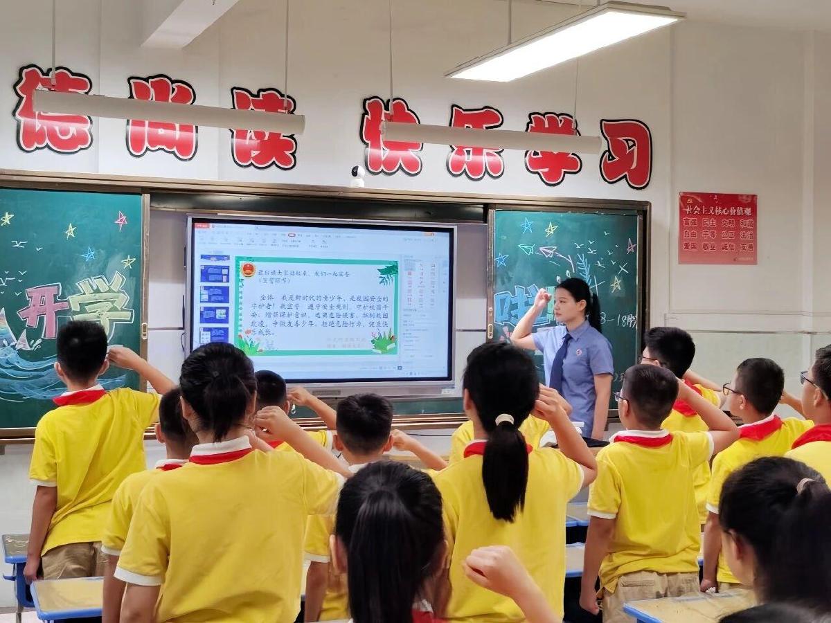 普法不止于课堂,黄石检察机关构建“课前+课中+课后”全链条服务体系。课前,法治副校长通过入校走访和问卷调研精准掌握需求,如黄石港区检察院针对黄石第十八中学周边交通复杂特点,推出“安全知识声入人心”课程。课中教学形式多元创新,在下陆中学“青春防诈修炼手册”课上,法治副校长设计“打赏风暴”等互动场景提升学生们的警惕性。课后建立长效机制,中山小学设立了“安全隐患即时响应机制”,大冶一中则明确检察官参与学校安全管理制度制定。