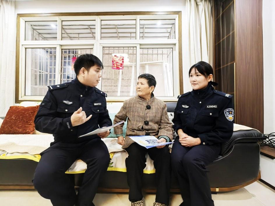“大爷大妈,这些宣传单,你们一定要仔细看看,防止上当受骗!”10月20日,东岳路派出所民警、“银龄反诈”志愿服务队队员罗燕走进永胜社区张麒小区,开展走访入户宣传活动。为让宣传内容更易被老年人接受,东岳路派出所结合“千警进万户”“扫楼清户”“大走访”等活动,组织民辅警深入居民家中,针对老年人群体开展入户走访宣传,通过面对面地交流,用通俗易懂的本地话,结合近期发生的真实案例,开展多层次、接地气、有针对性的防范宣传工作,将反诈知识送入每一个小区、每一户家庭。