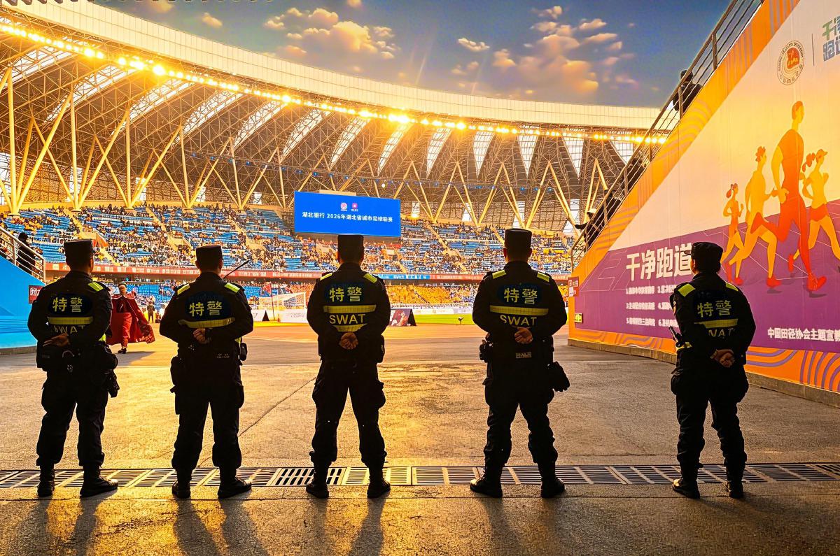 记者了解到,“楚超”开幕前,市公安局提前制定安保方案,打破警种壁垒,搭建“1部,3区,8组”安保指挥体系,完善实施方案,压实责任到岗到人,并组织对赛场落实安检验收、安全检查,检查后实行封闭管理。为强化应急处突,市公安局将看台划分为16个安保区块,使用硬隔离相互分隔,逐一安排公安、志愿者、保安员联勤值守,明确各区责任人,确保一旦出现突发情况,快速调度处置。