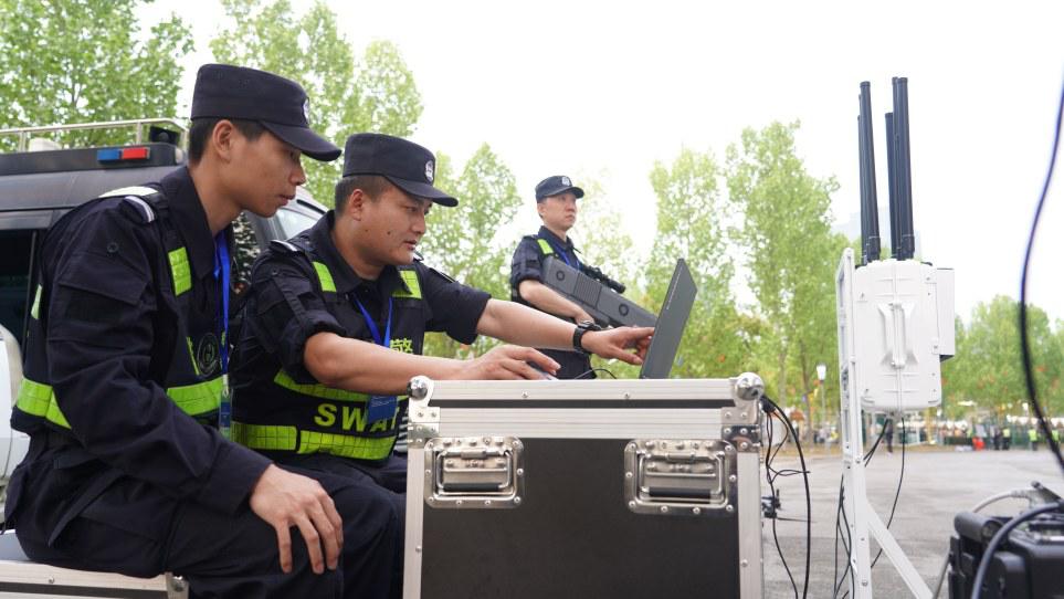 特警队员在进行无人机反制巡查
