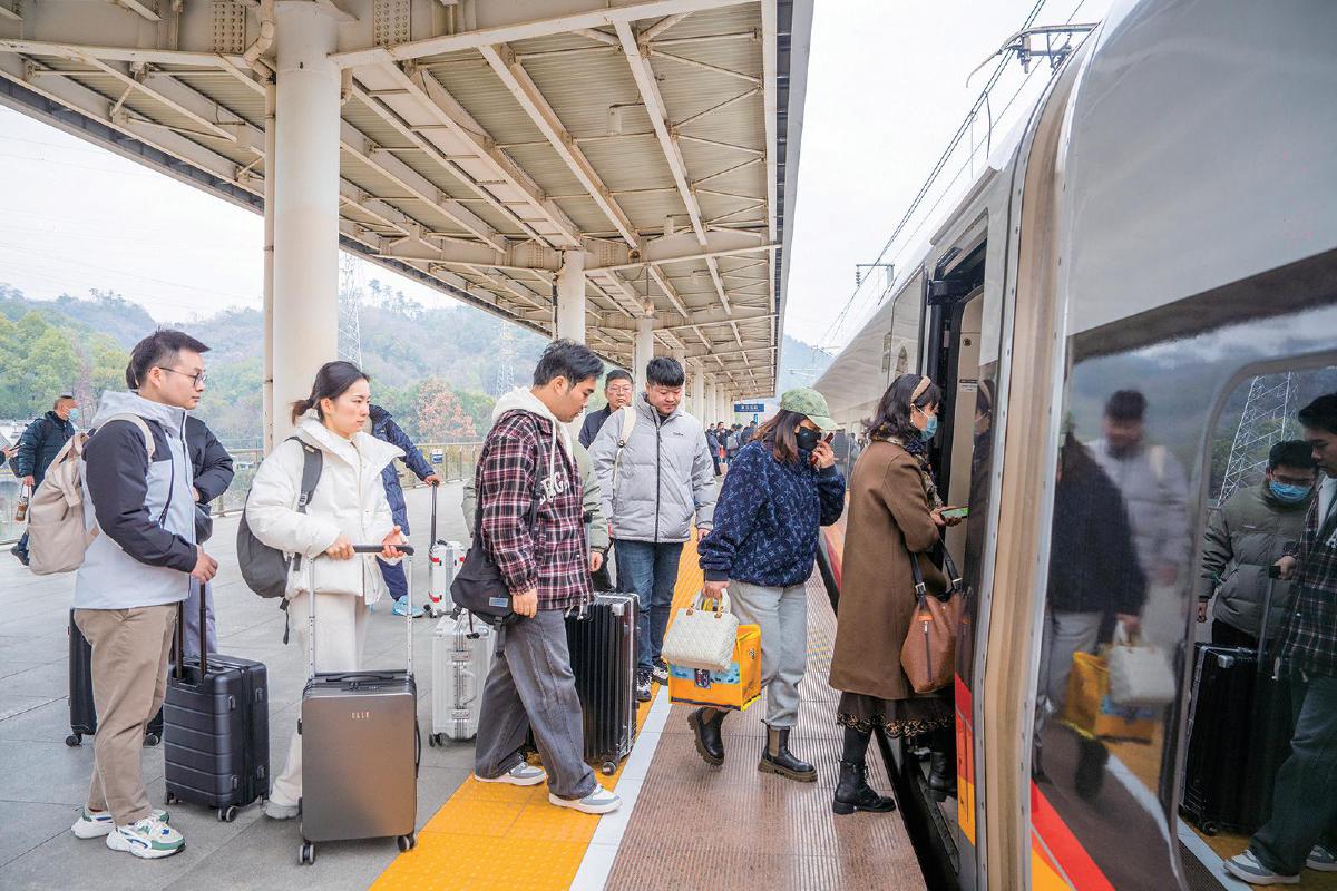 14日,黄石北站乘客有序乘车。春运首日,全市公铁水安全运送旅客2.72万人次,与2024年相比增长4.1%。其中,铁路运送1.48万人次,同比增长29.7%。